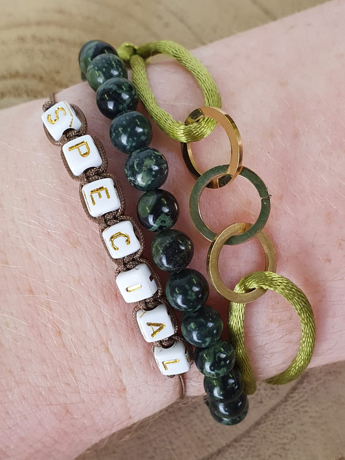 Deze custom armband kun je maken met elk woord die je wilt.